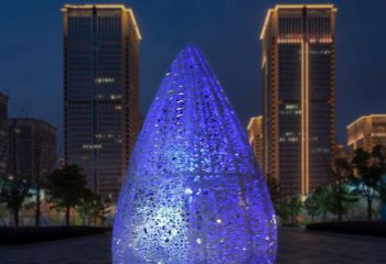 夜晚發光不銹鋼鏤空水滴雕塑