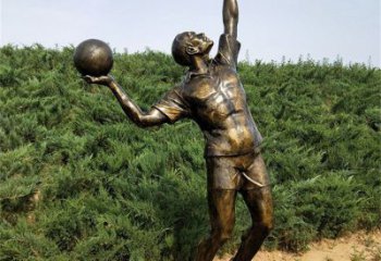 學校里一座新穎而富有活力的不銹鋼打籃球雕塑